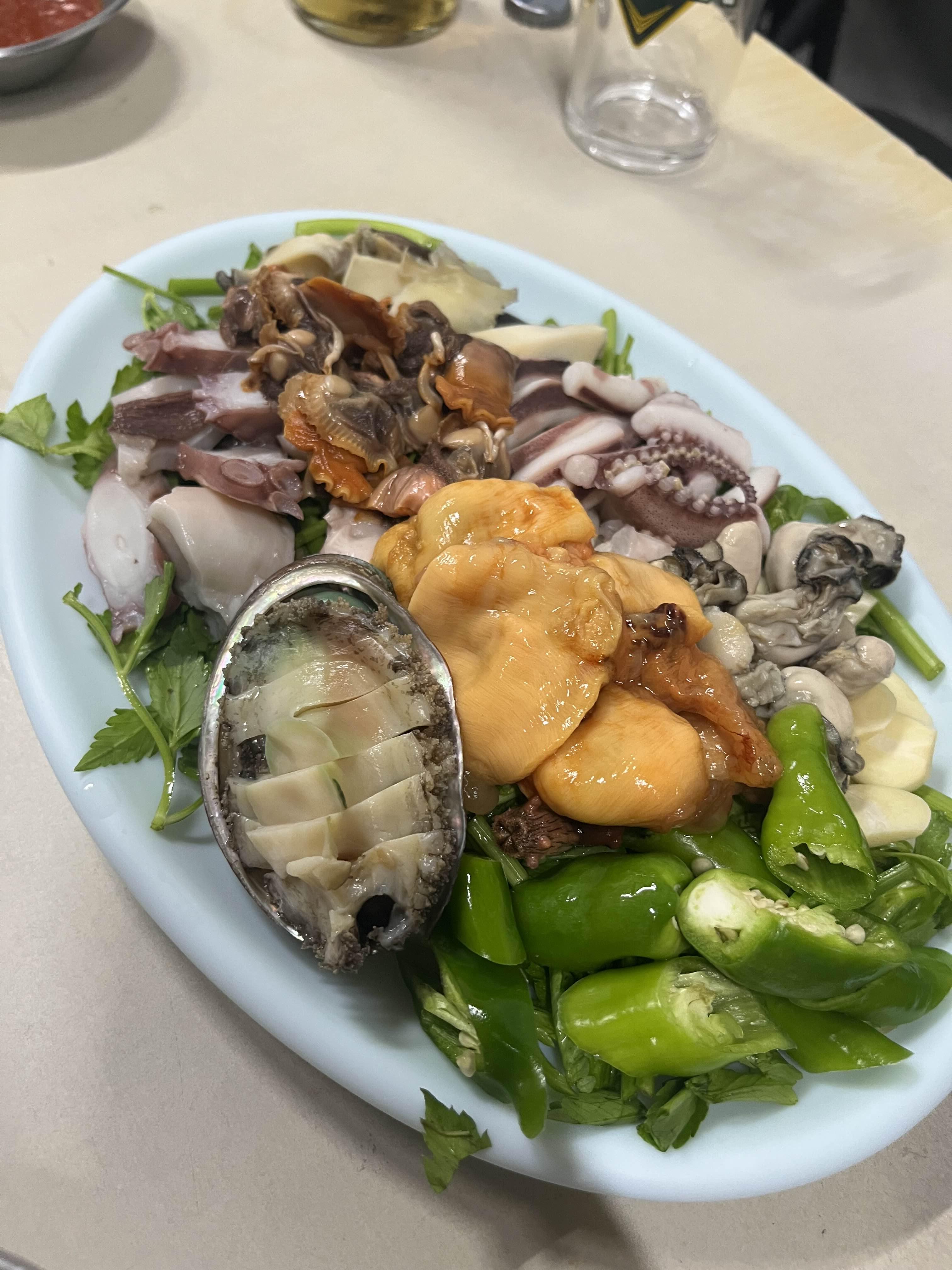 우리 학교 옆 신공학관에서 역으로 가다보면 있는 오래된 간판집. 사실 하얀집에서 4000원 짜리 칼국수 하나 시켜두고 소주만 먹었던 청춘이었던지라 몇만원짜리 해물은 좀 부담스러워서 직장인이 되고 처음으로 와봤다.